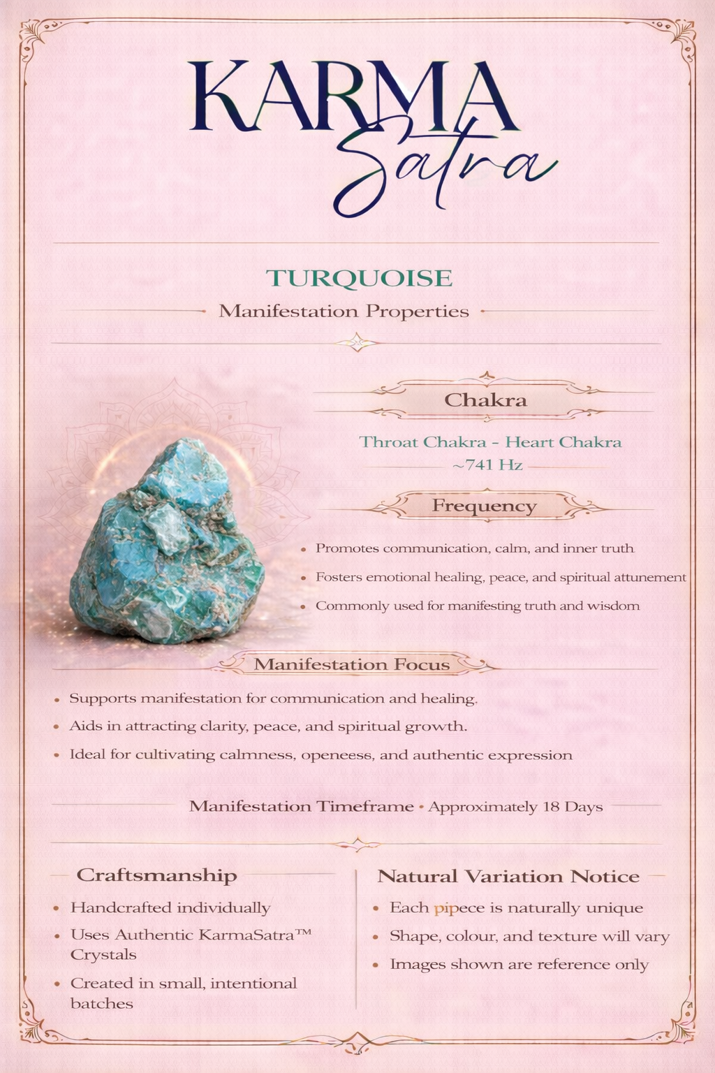 Each piece is made by hand using Authentic KarmaSatra™ Crystals, assembled through a specialised process developed over years of practice. Carried consistently, the piece is intended to support steady intention, awareness, and alignment as you move through daily environments.